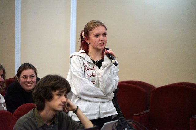 Особливий інтерес у студентів викликав майстер-клас, який акторка провела наживо. Вона продемонструвала практичні техніки роботи з емоцією, увагою, природністю та внутрішньою дією. Молодь охоче долучалася до вправ, ставила запитання про творчий шлях, дисципліну, підготовку до ролей і способи збереження професійної стійкості.