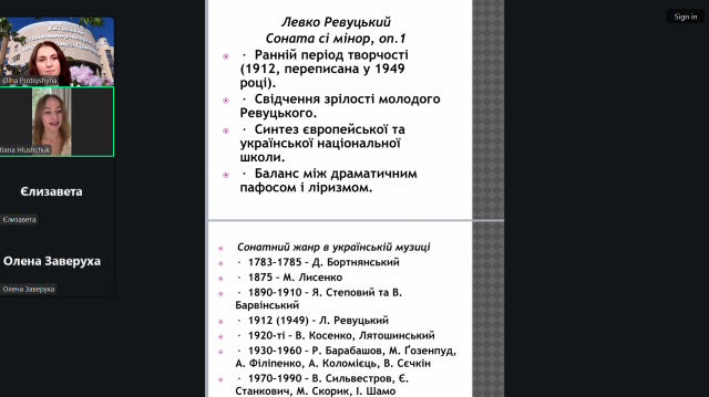 Лекцію прослухали студенти та викладачі Факультету музичного мистецтва і хореографії, які мали можливість поглибити свої знання про творчість одного з найвидатніших українських композиторів ХХ століття – Левка Ревуцького. Лекторка зосередила увагу на ключових етапах його життя та творчого становлення, а також окреслила культурно-історичні умови формування української сонатної традиції.