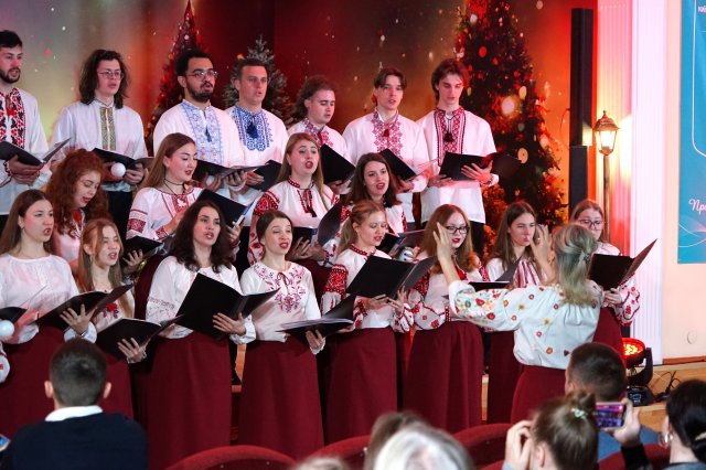 Захід наповнили сучасні вокальні й поетичні композиції у виконанні талановитих студентів – майбутніх співаків, музикантів, акторів і хореографів. Особливої атмосферності додали виступи вокально-інструментальних ансамблів та колядки хору «Brevis» (керівник: кандидат мистецтвознавства, доцент Олена Заверуха, концертмейстер – Ірина Антипіна, партія скрипки – Віталій Годований). Поєднання різних жанрів та стилів створило цілісний різдвяний перформанс, сповнений мелодійної зимової магії.