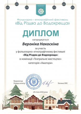 Вітаємо студентів 1 курсу ОПП «Акторське мистецтво драматичного театру і кіно» – Софію Скороход, Вероніку Накоскіну, Марію Зубцову та Софію Горіславець – із відзнакою у щорічному фольклорно-етнографічному фестивалі «Від Різдва до Водохреща»!