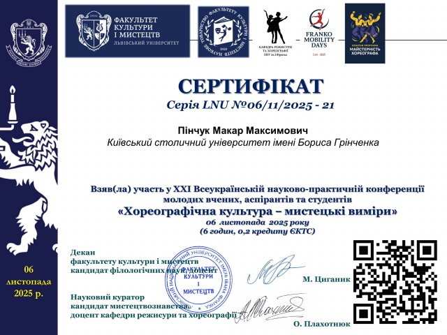– Пінчук Макар Максимович (Київський столичний університет імені Бориса Грінченка);