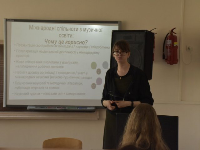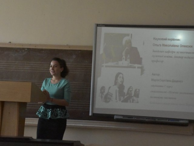 Із вітальним словом виступили: Ольга Миколаївна Олексюк, доктор педагогічних наук, професор, завідувач кафедри теорії та методики музичного мистецтва та Лариса Анатолівна Бондаренко, кандидат педагогічних наук, доцент кафедри теорії та методики музичного мистецтва, заступник директора з наукової роботи. Наталія Віталіївна Соболь,голова Наукового товариства Інституту мистецтв, кандидат педагогічних наук, старший викладач кафедри інструментально-виконавської майстерності, після привітання учасників конференції, виголосила доповідь, в якій поділилася своїм досвідом учасниці міжнародних конференцій з проблем музичної освіти.