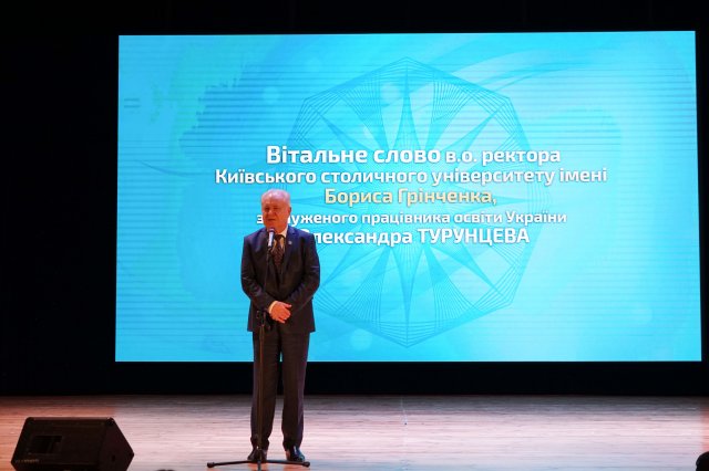 З вітальним словом виступив в. о. ректора Київського столичного університету імені Бориса Грінченка, заслужений працівник освіти України Олександр Турунцев.
