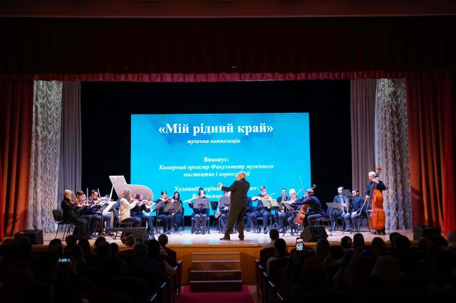 Святковий захід в концертній залі Університету відкрив Камерний оркестр Факультету музичного мистецтва і хореографії під керівництвом заслуженого діяча мистецтв України, доцента кафедри інструментально-виконавської майстерності – Володимира Ткаченка. У виконанні оркестру прозвучала музична композиція «Мій рідний край».