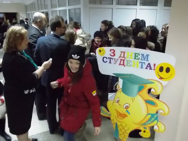 Подальша програма, яку провела заступник директора з науково-педагогічної та соціально-гуманітарної роботи Г.Г.Кондратенко нагадувала бліц-калейдоскоп. Модне дефіле студентського смаку, цікаві питання на знання історії рідного навчального закладу, аукціон корисних речей – все це подарувало заряд чудового настрою та атмосферу справжнього молодіжного шоу. А фотовиставка «Студентське життя Університету» показала, що кожен охочий може через фотопризму cвого бачення світу поділитися враженнями про яскраве та різноманітне студентське життя! Всі присутні мали змогу насолодитися талантами один одного та від щирого серця привітати зі святом.