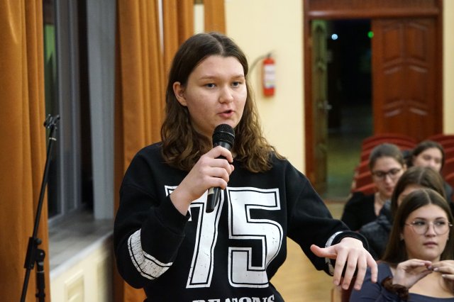 Особливий інтерес у студентів викликав майстер-клас, який акторка провела наживо. Вона продемонструвала практичні техніки роботи з емоцією, увагою, природністю та внутрішньою дією. Молодь охоче долучалася до вправ, ставила запитання про творчий шлях, дисципліну, підготовку до ролей і способи збереження професійної стійкості.
