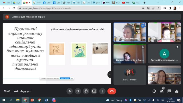 Після підведення підсумків конференції заключне слово виголосила Ганна Кондратенко, т.в.о. директора, заступник директора з науково-педагогічної та творчої роботи, доцент кафедри музикознавства та музичної освіти Інституту мистецтв Київського університету імені Бориса Грінченка, кандидат педагогічних наук