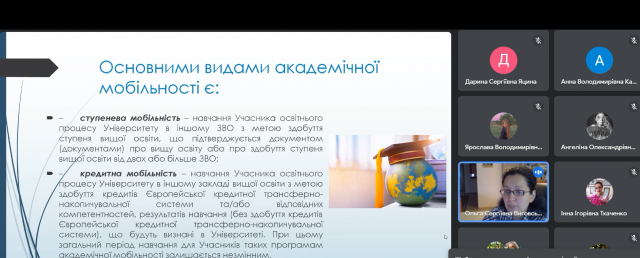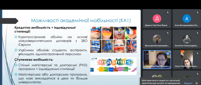 Учасники вебінару мали змогу ознайомитися з можливостями навчання за кордоном за програмою Еразмус+, дізнатися вимоги конкурсу для участі у міжнародних програмах академічної мобільності та отримали контактну інформацію. Теоретична і практична інформація була подана спікером конструктивно, цікаво, з прикладами й ілюстраціями. Організатори щиро вдячні спікеру Ользі Сергіївні та учасникам онлайн-зустрічі!