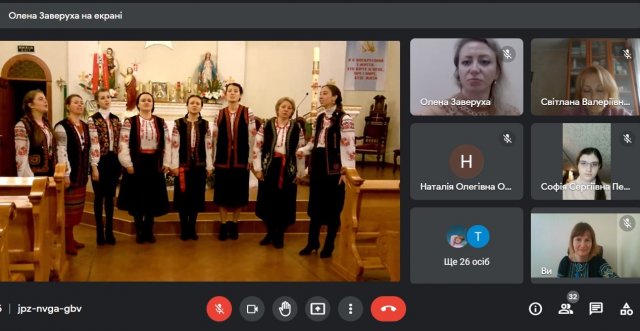 На зустрічі розглянуто структуру посібника, розкрито зміст, теоретичні і методичні аспекти. Охарактеризовано репертуар, вправи для розвитку вокально-ансамблевих навичок. Заслухано і проаналізовно твори для вокальних ансамблів, що вміщені у посібнику.