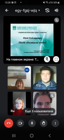 3. Кобзаренко Ю., студент 4 курсу, виступив з презентацією на тему: “Пісня “Козацька” сім'я”, науковий керівник канд. мист., доц. Чернета Т.О.