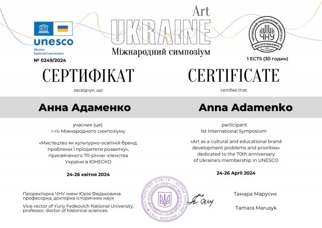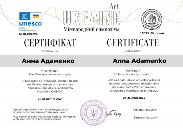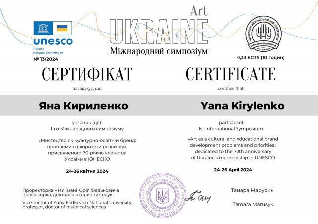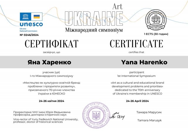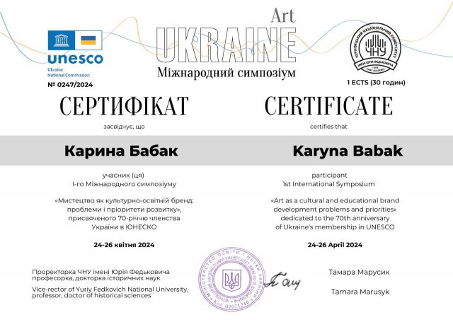 І Міжнародного симпозіуму, присвяченого 70-річчю членства України в ЮНЕСКО, здобувачів першого (бакалаврського) рівня вищої освіти кафедри академічного та естрадного вокалу й їх наукового керівника