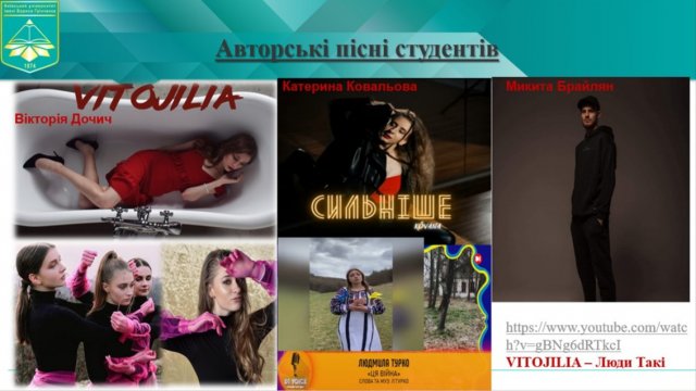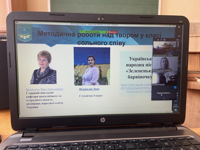Кульмінацією заходу стало демонстрування відеозапису студентки ІV курсу Неживляк Інни (клас ст. викладачки, відмінниці освіти України В. Яковенко), яка виконала українську народну пісню «Зелененький барвіночку», і долучення В. Яковенко, яка прокоментувала вокально-виконавські можливості студентки, а також ознайомила присутніх з особливостями власної методики викладання вокалу.