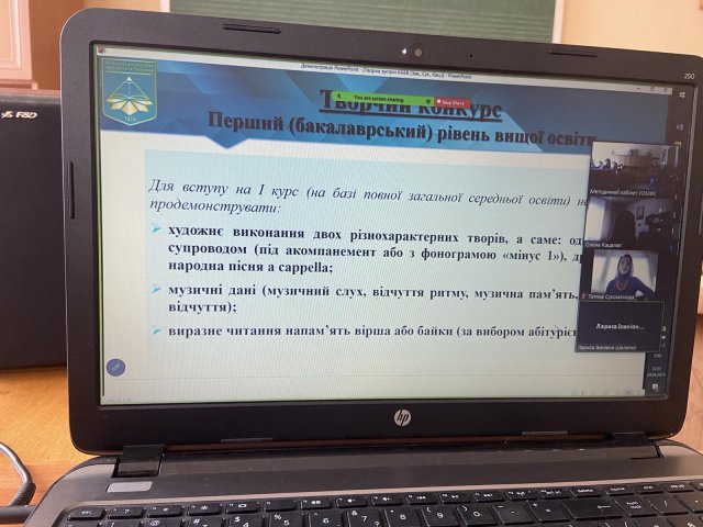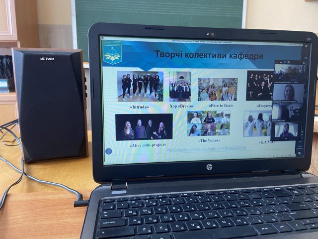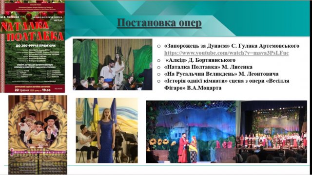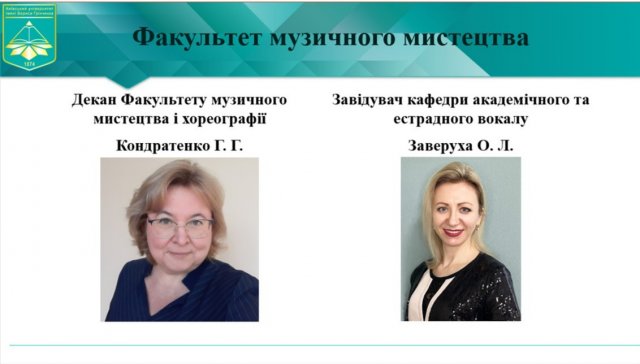 Метою зустрічі було ознайомлення присутніх із роботою однієї зі складових частин Університету – кафедри академічного та естрадного вокалу. Відтак до уваги слухачів було представлено презентацію, що висвітлювала ключові напрями її діяльності: освітньо-професійні програми, за якими навчаються здобувачі, постановки опер і вистав за їхньої участі, функціонування творчих колективів з демонструванням фрагментів виступів, наукова робота, майстер-класи, сольні концерти тощо. Також було акцентовано увагу на умовах вступу на навчання для бажаючих долучитися до нашої великої мистецької родини. Звісно, не залишилися без уваги й рушії всіх науково-творчих процесів кафедри – керівництво та професорсько-викладацький склад.