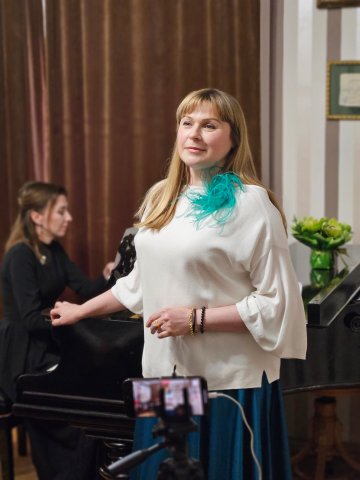 З вітальним словом виступили завідувачка кафедри академічного та естрадного вокалу Олена Заверуха та завідувач Меморіального музею –квартири Віктора Косенка Володимир Мудрик.