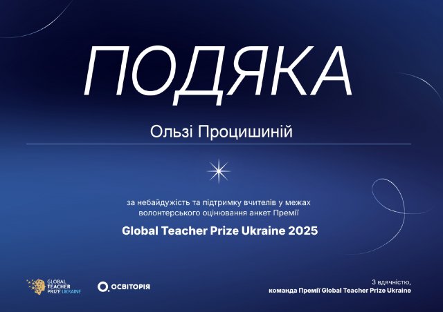 Дякуємо Ользі Юріївні за громадську активність та представлення Університету Грінченка серед волонтерської команди Премії Global Teacher Prize Ukraine.
