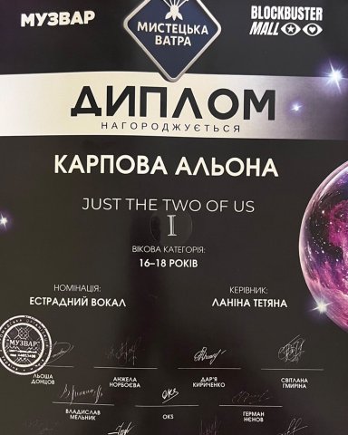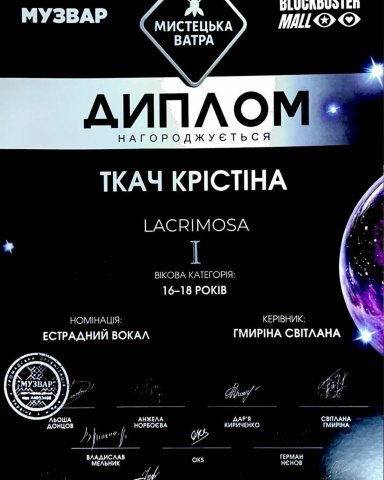 - Ткач Крістіна - 1 місце (клас ст.викл. Світлани Гмиріної)