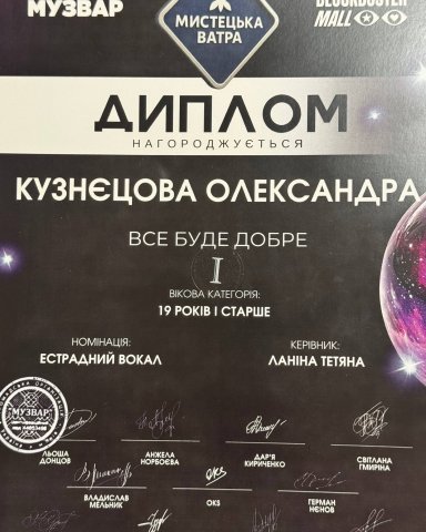 Кузнецова Олександра - 1 місце (клас ст.викл. Тетяни Ланіної)