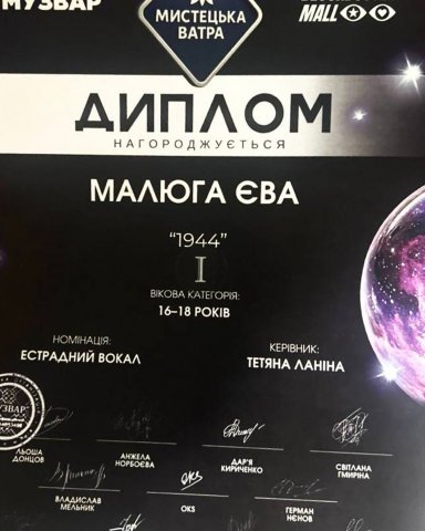 Малюга Єва - 1 місце (клас ст.викл. Тетяни Ланіної)