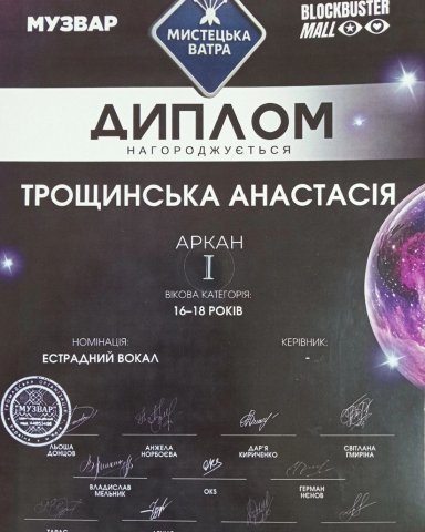 Трощинська Анастасія - 1 місце (клас ст.викл. Світлани Гмиріної)