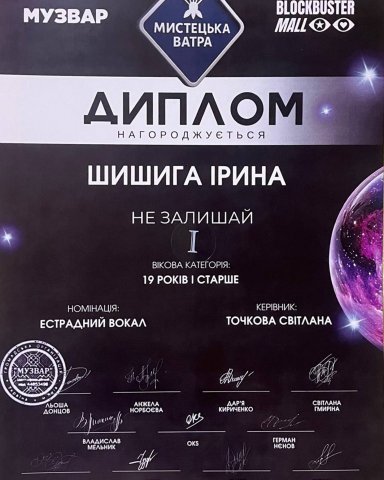 - Шишига Ірина - 1 місце (клас викл. Світлани Точкової)