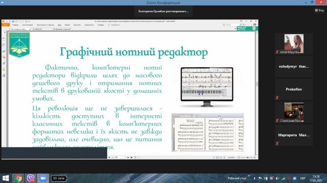 17 травня 2021 о 13.00 у рамках Фестивалю науки в Київському університеті імені Бориса Грінченка, 11.05.–21.05.2021, з ініціативи кафедри інструментально-виконавської майстерності Інституту мистецтв відбувся семінар-практикум «Застосування інформаційно-комунікативних технологій в галузі музичної освіти», який підготувала та провела Цимбал Катерина Олександрівна, старший викладач кафедри. Комунікація здійснювалася засобами Zoom.