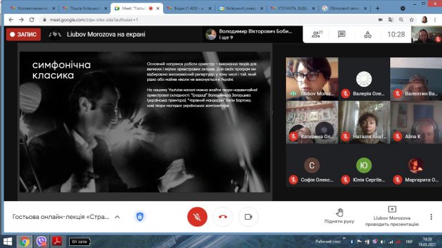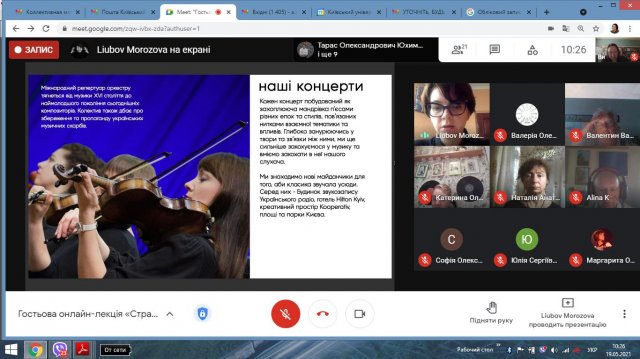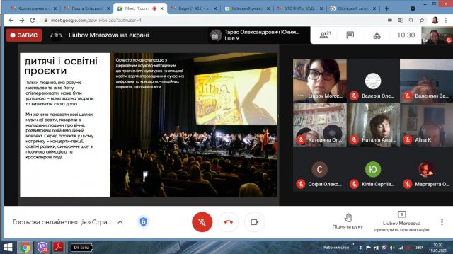 19 травня 2021 о 10.00 у рамках Фестивалю науки в Інституті мистецтв Київського університету імені Бориса Грінченка, за ініціативи кафедри інструментально-виконавської майстерності відбулася гостьова онлайн-лекція «Стратегії розвитку оркестру» за участі музикознавця, художнього керівника державного підприємства «Державний академічний естрадно-симфонічний оркестр України» Kyiv Symphony Orchestra Любові Сергіївни Морозової.