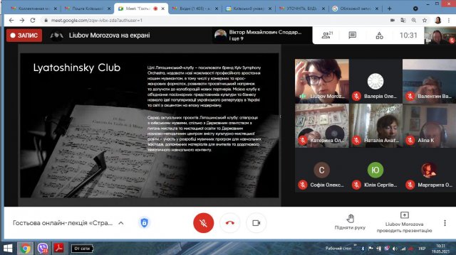 Під час гостьової лекції усіх присутніх було ознайомлено із репертуарною та маркетинговою політикою оркестру, його творчою діяльністю та особливостями функціонування під час пандемії, збереженням та пропагандою українських музичних скарбів у ракурсі активності Kyiv Symphony Orchestra – державного колективу з 40-річною історією, який відшукує новий образ, перебуває в ситуації ребрендингу.