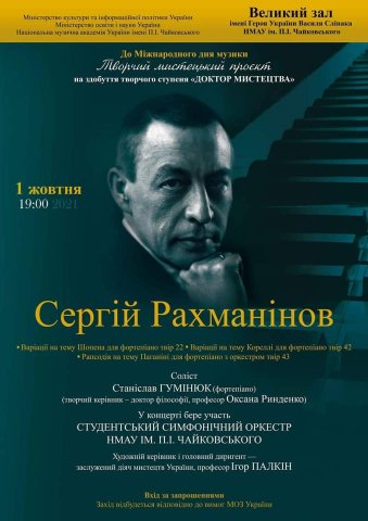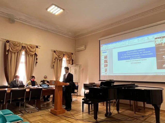 Вітаємо нашого колегу – викладача кафедри інструментально-виконавської майстерності Станіслава Павловича Гумінюка (творчий керівник та науковий консультант кандидат мистецтвознавства, професор О. В. Ринденко) – з блискучим захистом творчого мистецького проекту «Варіаційні цикли С. В. Рахманінова як творча платформа жанрово-стильових взаємодій»!