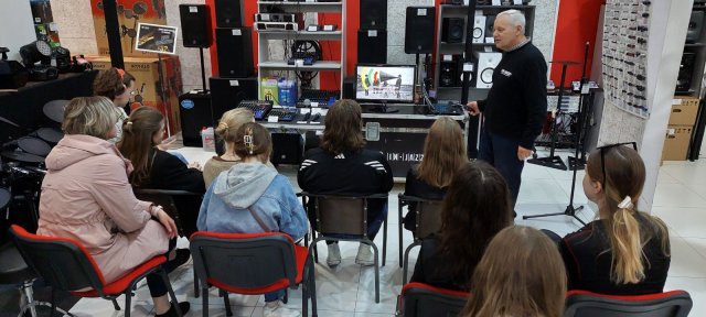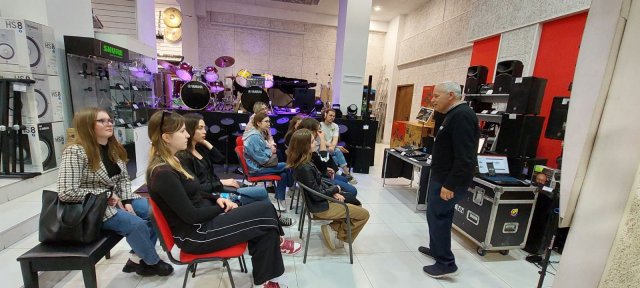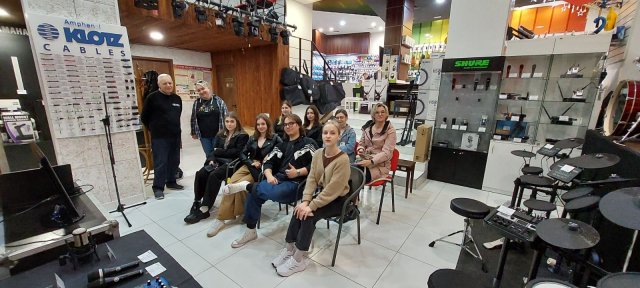 15 квітня 2024 року студенти-вокалісти другого бакалаврського та першого магістерського курсів в рамках вивчення дисциплін "Студійний звукозапис" та "Студійний практикум" під керівництвом старшого викладача кафедри інструментально-виконавської майстерності Катерини Цимбал відвідали магазин музичних інструментів «In-Jazz».