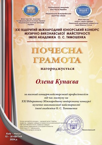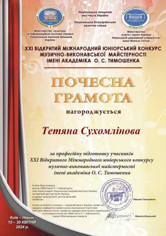 У ХХІ Відкритому Міжнародному юніорському конкурсі музично-виконавської майстерності імені академіка