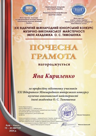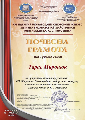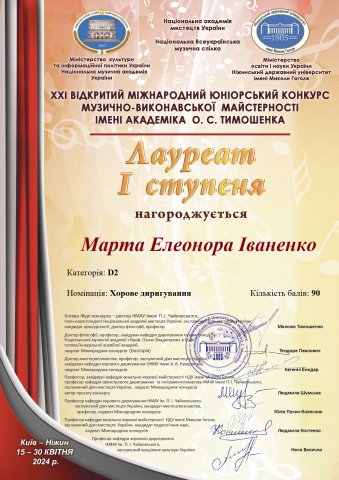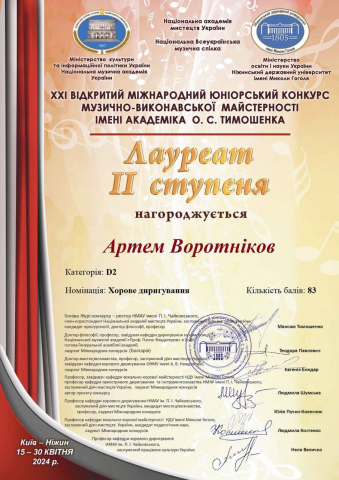 О. С. Тимошенка (Ніжин), номінація «Хорове диригування»