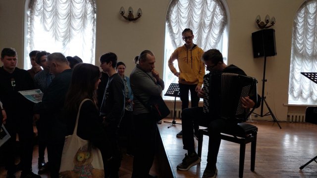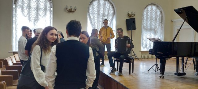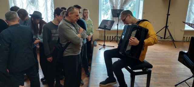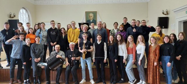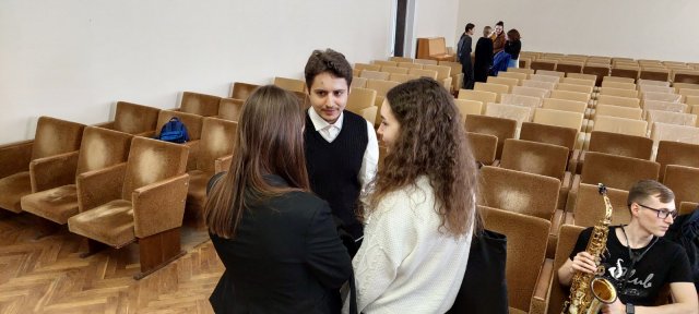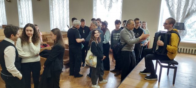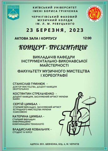 23 березня 2023 року викладачі кафедри інструментально-виконавської майстерності Факультету музичного мистецтва і хореографії Університету Грінченка провели профорієнтаційний захід для студентів Чернігівського фахового музичного коледжу ім. Л.М. Ревуцького. Наші колеги розповіли про Університет, правила вступу на освітні програми, перспективи навчання та подарували глядачам невеликий концерт. У програмі взяли участь доценти кафедри Станіслав Гумінюк (доктор мистецтва), Костянтин Стрельченко (заслужений артист України), старші викладачі Сергій Цимбал (заслужений артист естрадного мистецтва України) та Катерина Цимбал, а також студент четвертого курсу Владислав Ковальчук (викл. С.В.Цимбал). Надзвичайно цінним стало неформальне спілкування з майбутніми абітурієнтами, яке інколи перетворювалося у спонтанні майстер-класи.