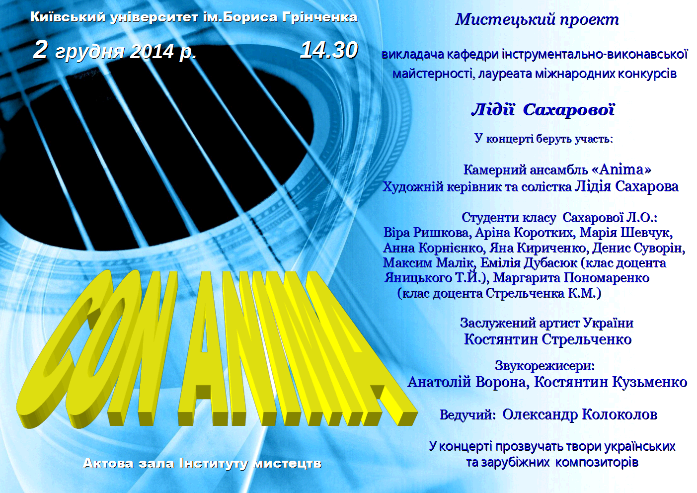 Мистецький проект викладача кафедри інструментально-виконавської майстерності, лауреата міжнародних конкурсів Лідії Сахарової 2 грудня 2014р. о 14 год. 30 хв.