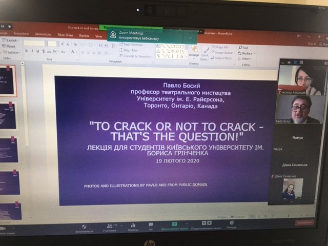 університету імені Раєрсона (Торонто, Канада), режисера, сценографа Павла Босого для студентів спеціальності Хореографія першого (бакалаврського) та другого (магістерського) рівня вищої освіти Київського університету імені Бориса Грінченка на тему «To crack or not to crack - that ҆s the question!». Лекцію було присвячено кращим постановкам балету «Лускунчик», зокрема проаналізовано творчі підходи до створення балету В. Вайнонена та М. Баришнікова (1977), American Ballet Theatre), Марка Моріса (1991), Моріса Бежара (1998), сера Метью Борна (1960).