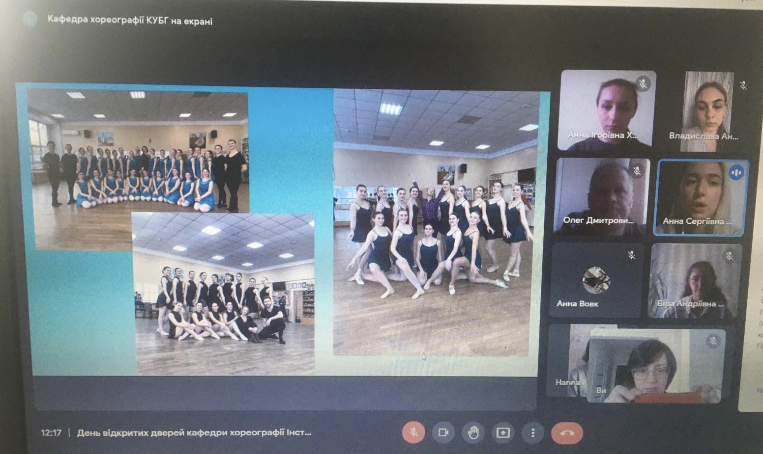 13.05.2022 р. о 12:00 відбулася онлайн-зустріч «День відкритих дверей» з абітурієнтами кафедри хореографії Інституту мистецтв Київського університету імені Бориса Грінченка. Модераторами зустрічі були: завідувач кафедри хореографії - Андрощук Людмила Михайлівна та викладачі: Синєок Віра Андріївна, Копієвський Олег Дмитрович, Хмельова Анна Ігорівна та Єліна Анна Сергіївна. На початку конференції, Людмила Михайлівна презентувала основну інформацію про особливості вступу 2022 р. та завдання фахових випробувань. Далі викладачі окреслили структуру викладання та зміст різних дисциплін кожного року навчання відповідно: народно-сценічний танець (Копієвський О.Д. та Синєок В.А.), класичний та спортивно-бальний танець (Єліна А.С.), сучасний танець та мистецтво балетмейстера (Хмельова А.І.). Також абітурієнти мали змогу отримати унікальну інформацію щодо створеного каталогу вибіркових дисциплін кафедри хореографії (доповідач - Копієвський О.Д.). Абітурієнти протягом зустрічі задавали багато питань, на які миттєво отримували докладні та чіткі відповіді. У кінці конференції нашим гостям було надано посилання на «Валізку майбутнього студента», в якій вони легко можуть знайти всі необхідні для вступу матеріали.