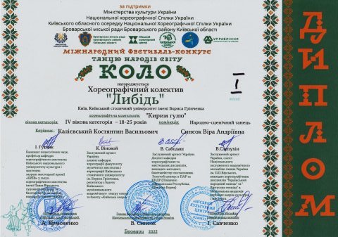 За результатами обговорення хореографічний колектив «Либідь» виборов І місця за кожний номер в номінації «Народно-сценічний танець» вікової категорії IV – 18-25 років.