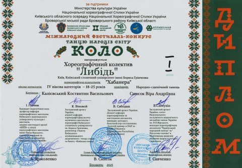 У фестивалі взяли участь студенти 1,2,3 та 4 курсів кафедри хореографії (завідувач кафедри – Людмила Андрощук) Київського столичного університету імені Бориса Грінченка в складі хореографічного колективу «Либідь» (керівники Віра Синєок та Костянтин Калієвський). На розгляд високоповажного журі було представлено 2 хореографічні композиції: кримсько-татарський танець «Кирим гулю» та іспанський танець «Хабанера».