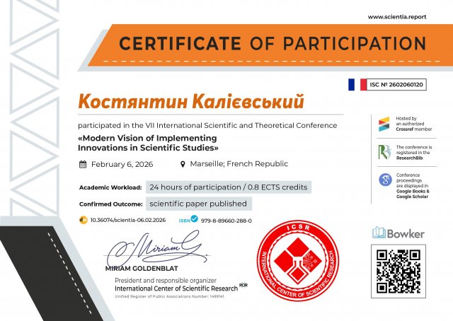 За результатами участі тези досліджень Грищенко Орини та Рибіної Анастасії опубліковано у збірнику матеріалів VII Міжнародної науково-теоретичної конференції «Modern Vision of Implementing Innovations in Scientific Studies».