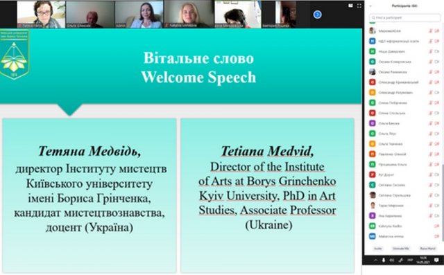 Пленарне засідання конференції вітальними словами відкрили: Наталія Віннікова, проректор з наукової роботи Київського університету імені Бориса Грінченка, доктор філологічних наук, доцент, та Тетяна Медвідь, директор Інституту мистецтв Київського університету імені Бориса Грінченка, кандидат мистецтвознавства, доцент.