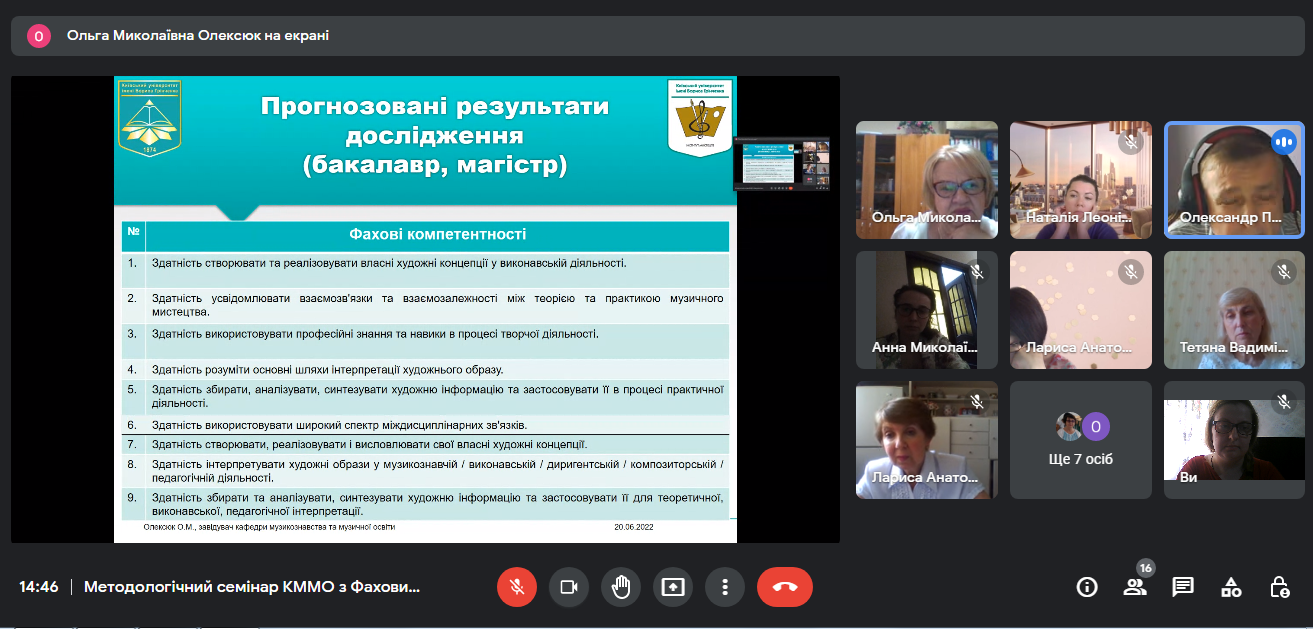 20 червня 2022 року на кафедрі музикознавства та музичної освіти відбувся методологічний семінар на тему «Особливості розвитку духовного потенціалу особистості в неперервній мистецькій освіті» в якому взяли участь викладачі циклової комісії музики та хореографії Фахового коледжу «Універсум». Учасникам методологічного семінару було представлено концепцію розвитку духовного потенціалу особистості у неперервній мистецькій освіті.