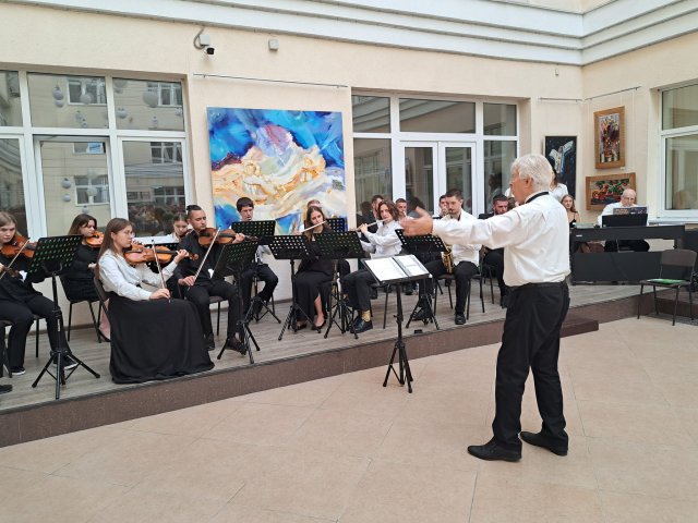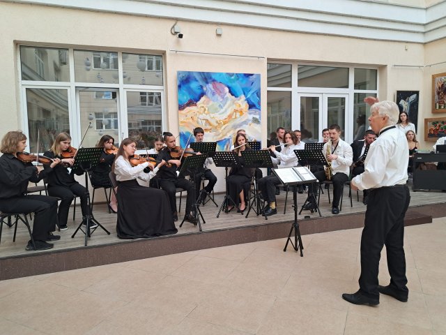 Урочисте відкриття виставки супроводжував камерний оркестр Факультету музичного мистецтва і хореографії Університету (керівник – Валентин Касьянов, старший викладач кафедри інструментально-виконавської майстерності) у складі співробітників та здобувачів першого (бакалаврського) та другого (магістерського) рівнів вищої освіти.